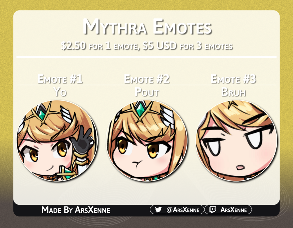 Mythra Emotes, $2.50 for 1 emote or $5 for all 3 emotes